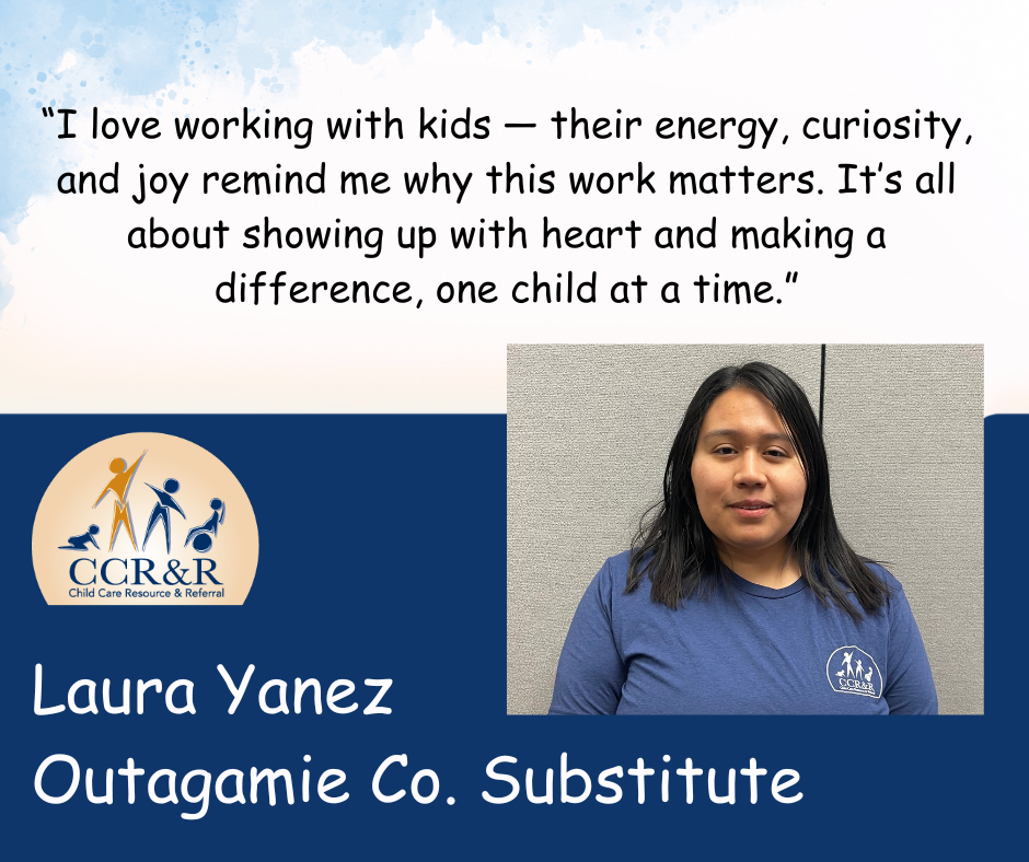 “Her interactions and times addressing behaviors were kind, positive, and respectful. This experience was beyond amazing for me and the children enrolled at my program.”- Outagamie County Family Child Care Provider